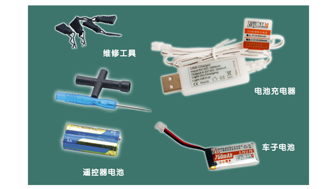 | 电机(马达) | 空载转速 | 电调/接收机 | 供电 | 转向舵机 | 遥控器频率 | 动力电池 |